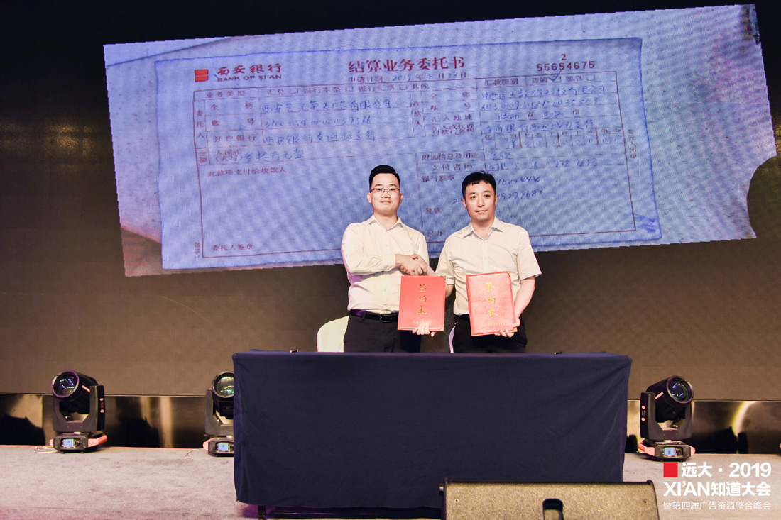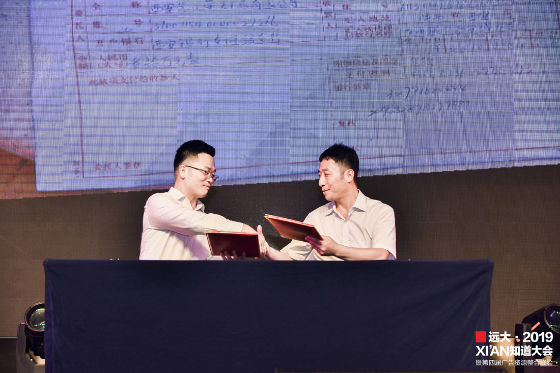 陕西艺汇荣天高总和远大科技李总现场签约,这场大会实现了我们的初衷,那就是广告人的资源整合、深度链接、共赢共进!