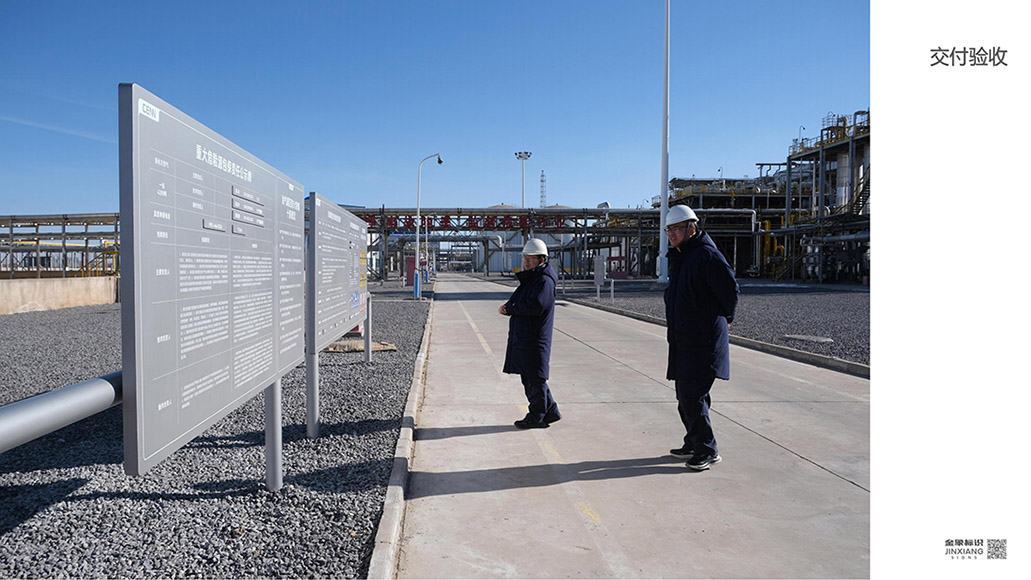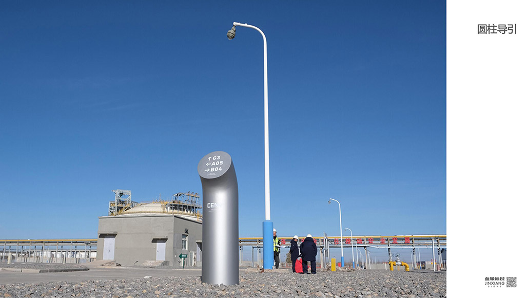 项目说明:本项目为中国北方天然气能源(简称北气能源)盐池生产基地园区导向标识设计&实施项目,经甲方前期多方市调及比对最终选择西安金象标识做为本项目服务商。双方合作确定后,经过前期多次打样、研讨,最终确定了《实施方案》。在设计形式上可以说完全突破了传统意义上的园区标识标牌固有形式,采用管道切面做为创意点,配以银色烤漆,将标导视同园区空间深度融合。同时甲方对质保要求对标先前我方所实施的'深圳富士康夏普项目“,同样也是要求质保十年。因此在主材选择、喷涂油漆及工艺方面我方又进行了进一步的优化和升级。2025年12月初开始进入生产阶段,2026年1月09日运至现场,01月12日实施到位并通过甲方验收。以下为本项目实施纪实,敬请品鉴。