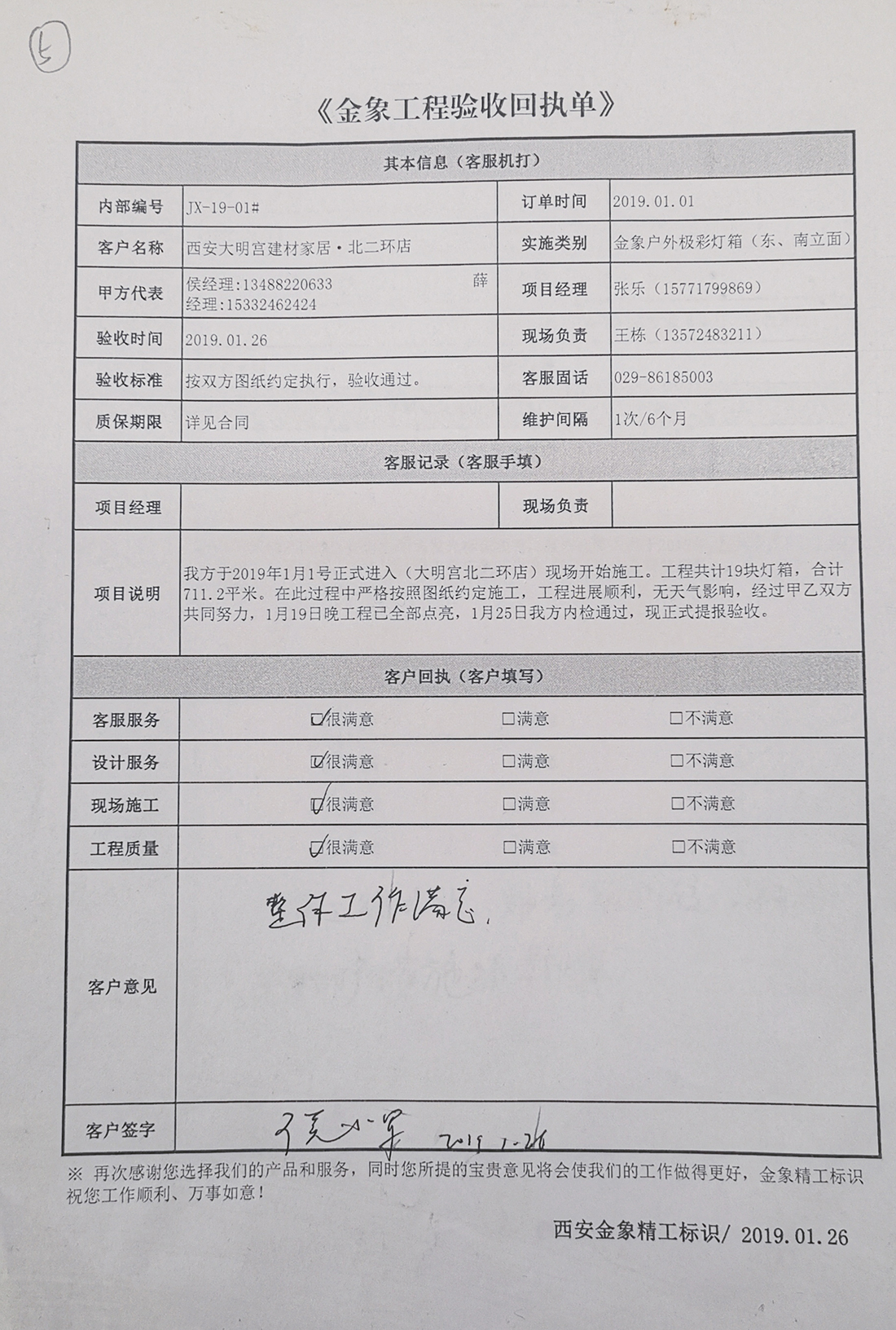 本项灯箱工程是金象户外极彩灯箱首次大规模商业应用,共计19块、711平米,单块最大规格达14m*5m,于2019年1月1日正式进场实施。我们除了做好前期规划、箱体加工、现场规范外,同时将商家提供的每一个发布画面均进行专业级的校订,确保其画面风格、色彩、同其所要呈现的效果和品牌调性相匹配。春节临近,我们提出了“高效完工、回家过年”的战斗口号,规范施工、有序推进,经过19个日夜奋战,终于在2019年1月19日晚全部提前点亮,1月26日正式通过验收。金象铁军再次取得骄人战绩,让我们一起来感受长安北城这道亮丽的风景线和我们金象铁军将士的风彩!