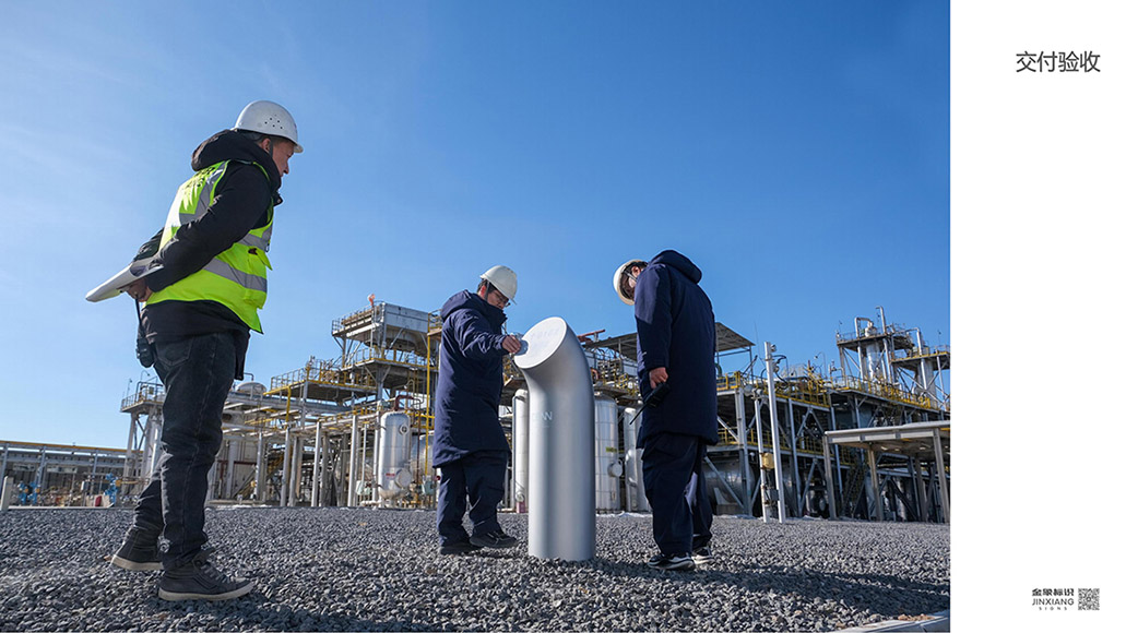 项目说明:本项目为中国北方天然气能源(简称北气能源)盐池生产基地园区导向标识设计&实施项目,经甲方前期多方市调及比对最终选择西安金象标识做为本项目服务商。双方合作确定后,经过前期多次打样、研讨,最终确定了《实施方案》。在设计形式上可以说完全突破了传统意义上的园区标识标牌固有形式,采用管道切面做为创意点,配以银色烤漆,将标导视同园区空间深度融合。同时甲方对质保要求对标先前我方所实施的'深圳富士康夏普项目“,同样也是要求质保十年。因此在主材选择、喷涂油漆及工艺方面我方又进行了进一步的优化和升级。2025年12月初开始进入生产阶段,2026年1月09日运至现场,01月12日实施到位并通过甲方验收。以下为本项目实施纪实,敬请品鉴。